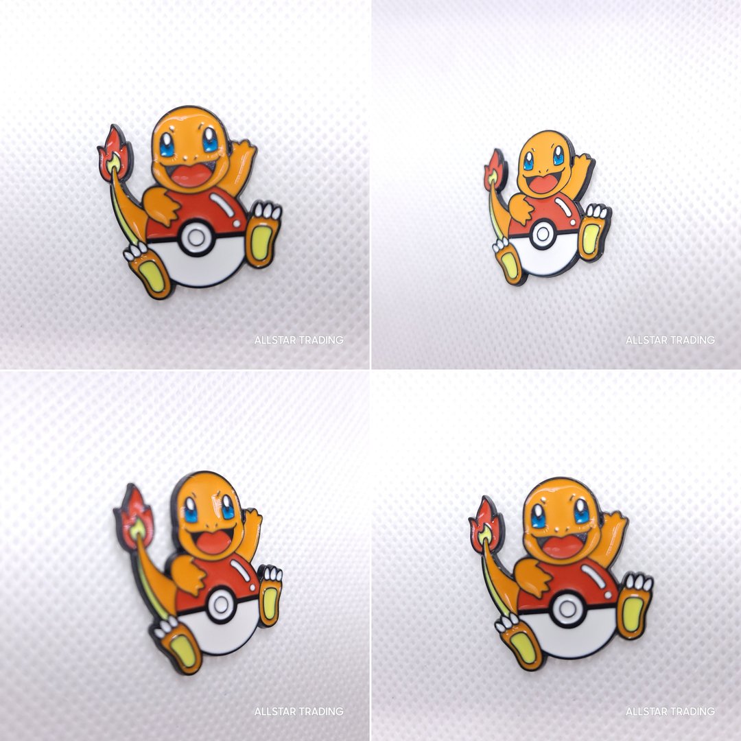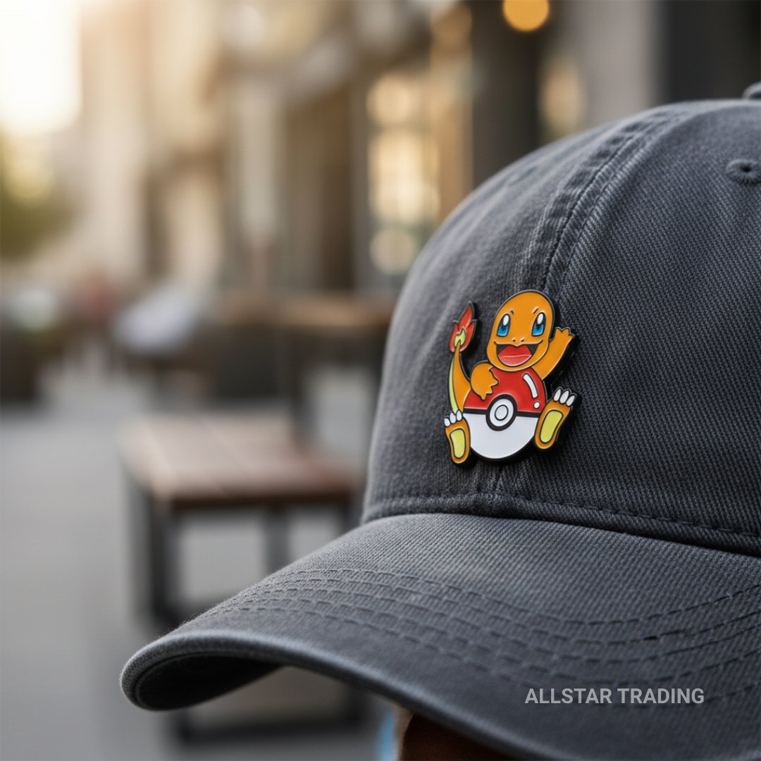 Enamel pin featuring Charmander in a playful Poké Ball-inspired design with bright colors and classic character details. A strong pickup for Pokémon fans, pin collectors, and display setups. Great for jackets, bags, hats, backpacks, lanyards, or pin boards.